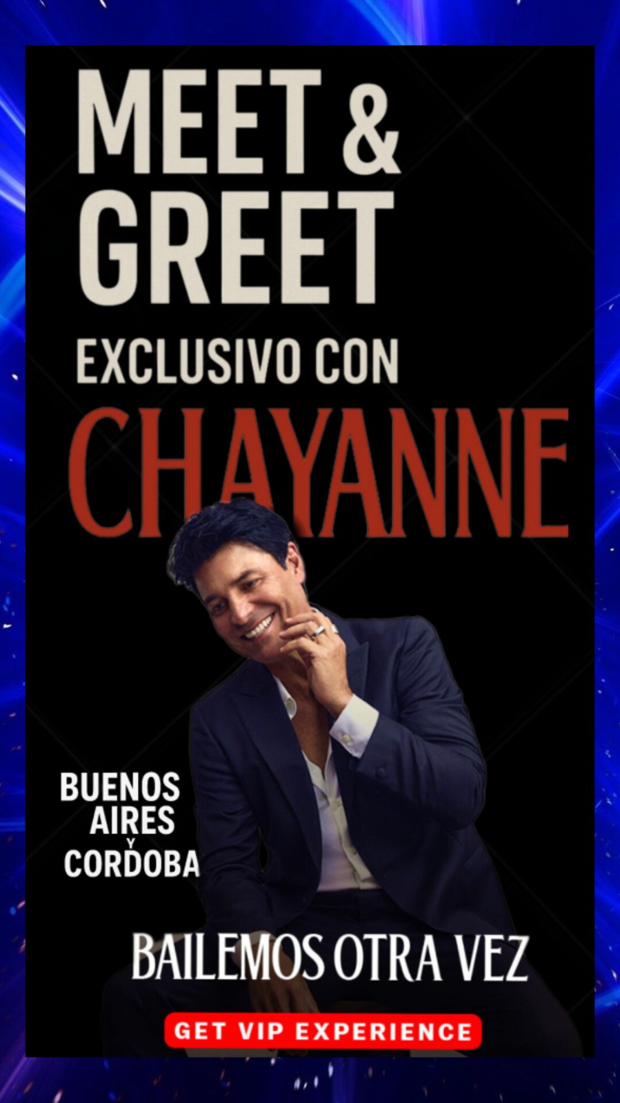 Vivirás una noche inolvidable junto al artista más querido de Latinoamérica 💖 🌟 Incluye: ✨ Acceso exclusivo al Meet & Greet con Chayanne, donde podrás conocerlo personalmente y tomarte una foto profesional 📸 💎 Ingreso VIP (Acceso preferencial) 💌 Acreditación VIP y obsequio conmemorativo especial de la experiencia 🥂 Recepción exclusiva con atención personalizada 💃 Un recuerdo para toda la vida, compartiendo unos minutos con el hombre que hace latir corazones en cada presentación 🎶 Una experiencia única, mágica e irrepetible. Porque estar cerca de Chayanne... es vivir un sueño hecho realidad. 💫💖