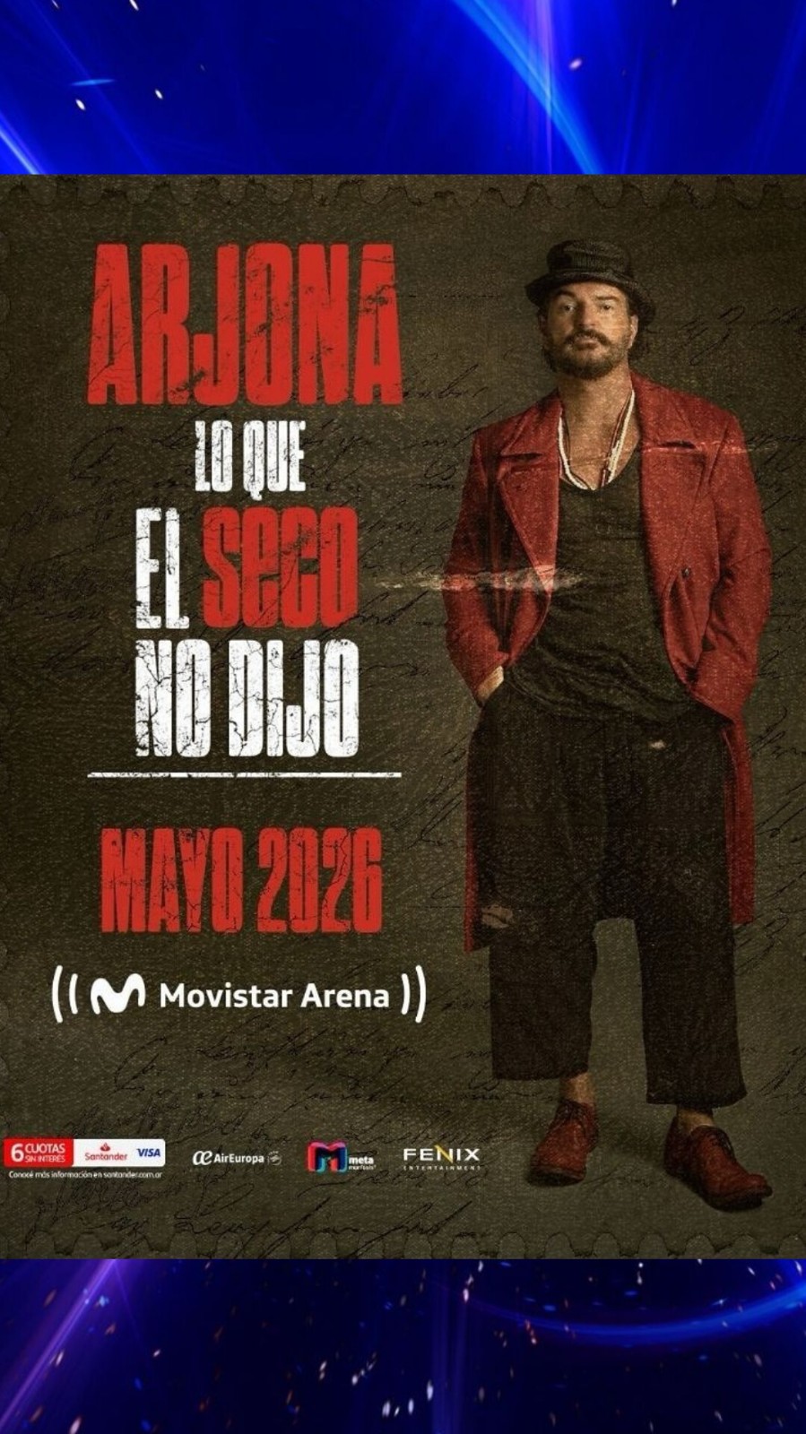 🔥 Prepárate para vivir una noche inolvidable con uno de los cantautores más icónicos de Latinoamérica. 💫❤️ En su tour “Lo Que El Seco No Dijo”, Ricardo Arjona nos invita a un viaje musical lleno de emociones, letras que tocan el alma y sus clásicos que han marcado generaciones🔥.